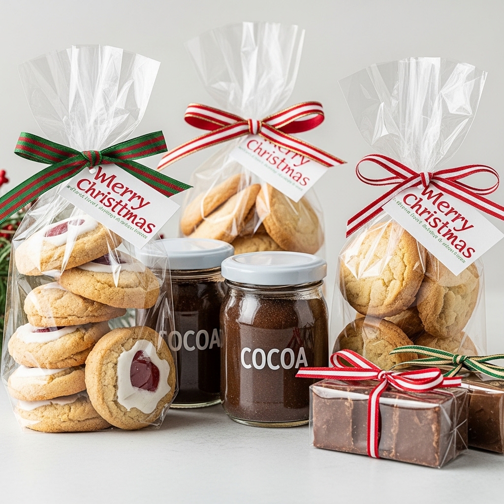 Cookies, fudge, or hot cocoa mixes in mason jars make perfect low-cost presents. Wrap them with festive ribbons and tags — a sweet, thoughtful, and budget-friendly surprise!