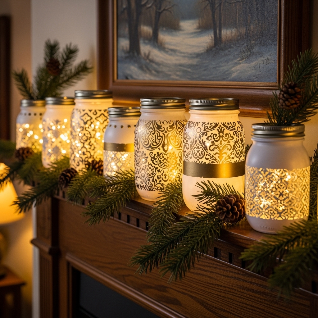Paint mason jars white or gold, add fairy lights, and you’ve got instant holiday charm.