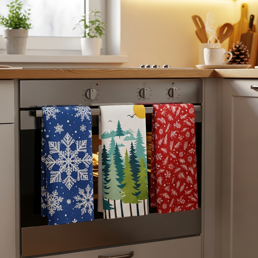 Swap your regular towels for winter-themed ones with snowflakes, forest prints, or neutral woven patterns. It’s an easy and budget-friendly seasonal update.