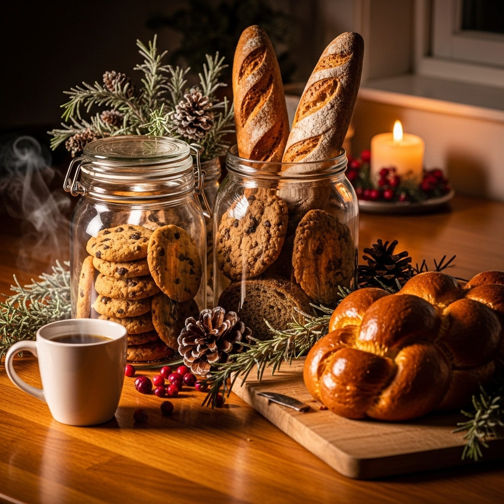 Keep baked cookies, muffins, or bread loaves in glass jars or domes. It adds warmth and a touch of hominess while encouraging slow, cozy mornings.