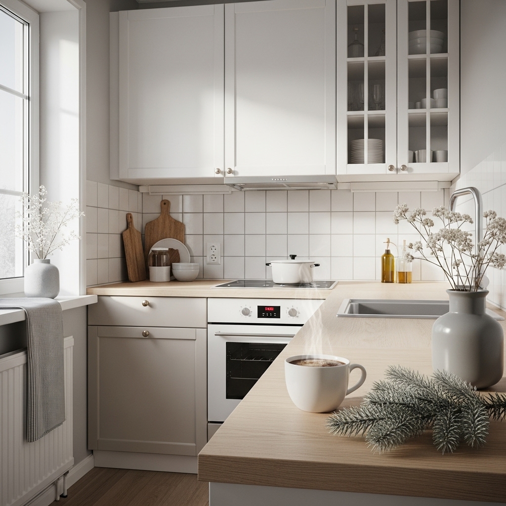 When winter arrives, our kitchens become the heart of the home—filled with the scent of cinnamon, baked cookies, and the warmth of hot cocoa simmering on the stove. But if you have a small kitchen, decorating for winter can feel like a challenge. The good news? You don’t need a large space to create a cozy, magical winter retreat. With the right touches of texture, color, and light, your kitchen can become a snug haven that feels festive and inviting all season long.