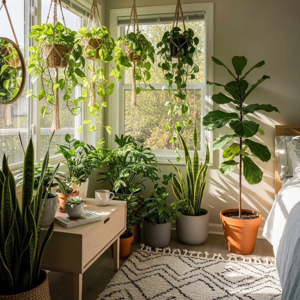 👉 Try easy-care ones like Snake Plants or Pothos.