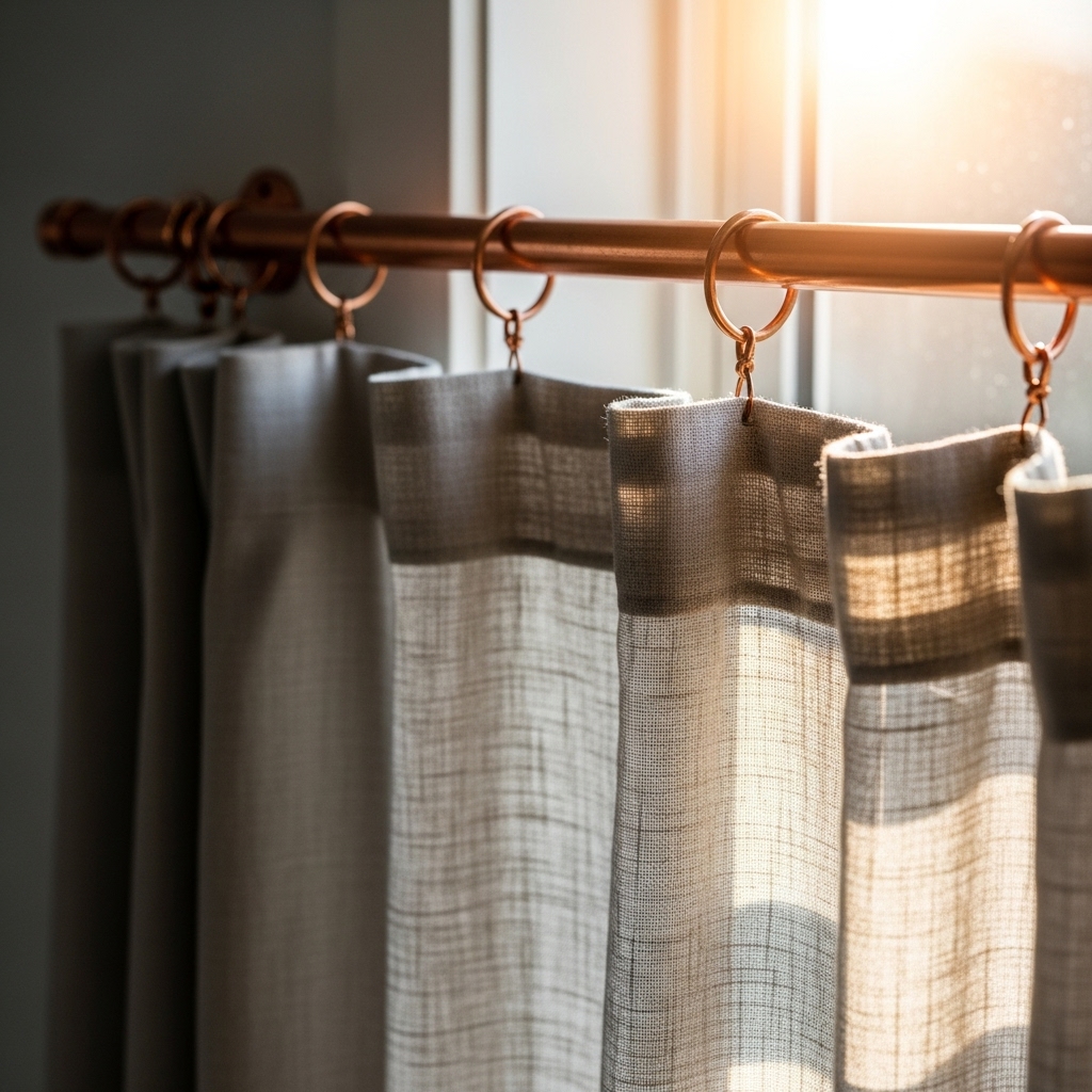 Copper pipes or wooden dowels can make stylish, budget-friendly curtain rods.