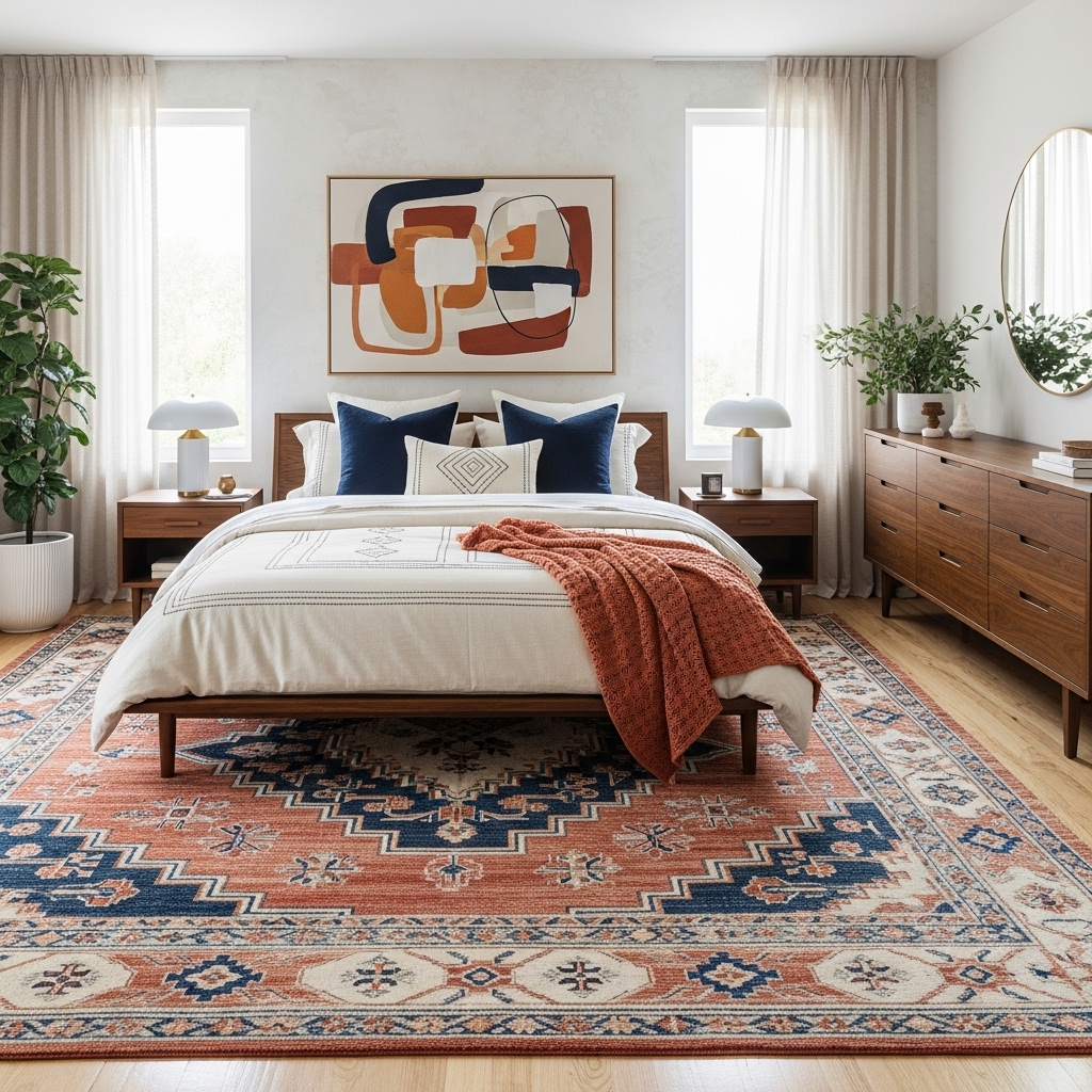 A bold rug can anchor your whole design and make your bedroom feel complete.
