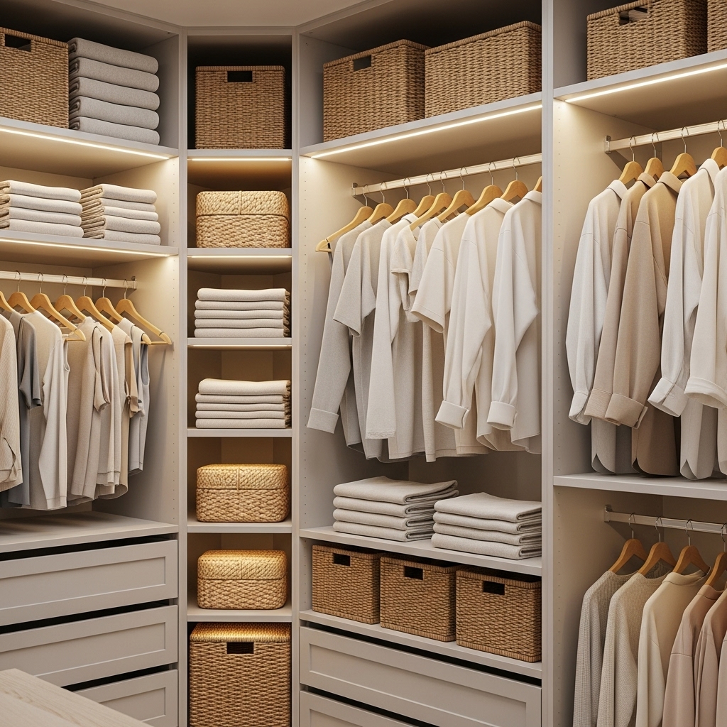 👉 Use LED Closet Strip Lights for a chic touch.