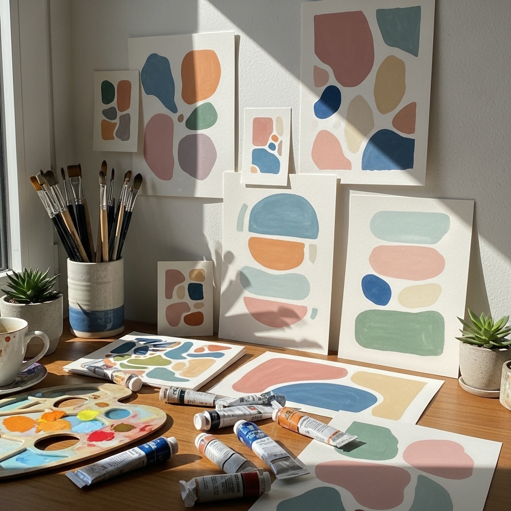 Print digital art at home, or create your own abstract paintings for a personal touch.