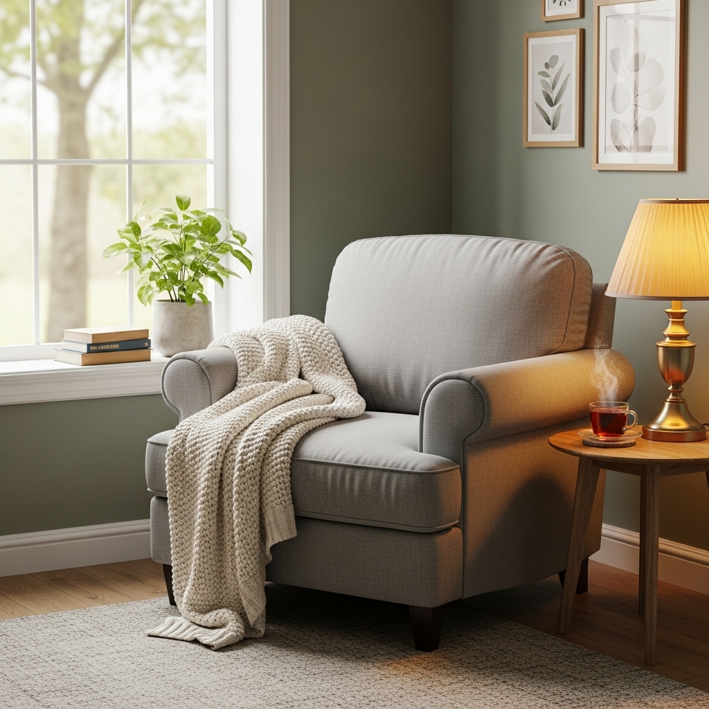 Add a cozy chair, throw blanket, and lamp in a corner.