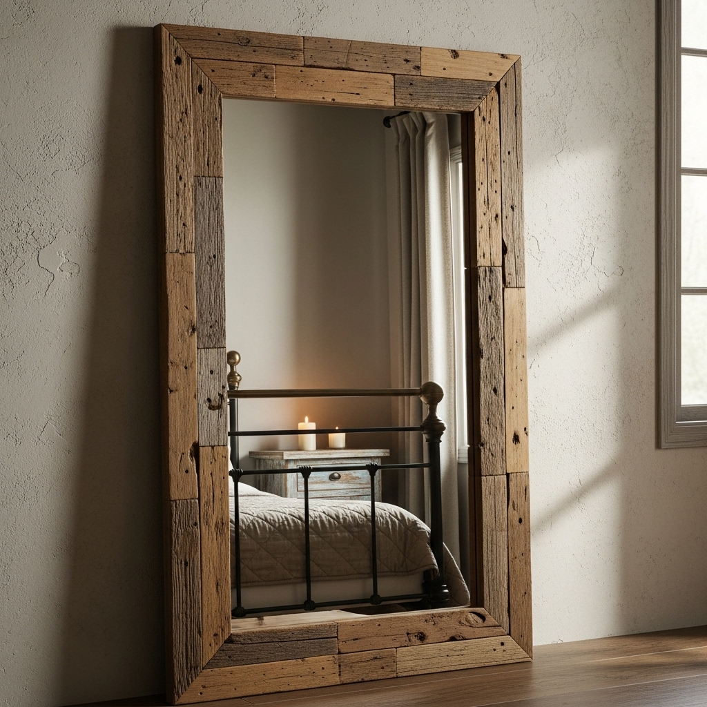 Frame a plain mirror with molding or reclaimed wood for a polished, custom look.