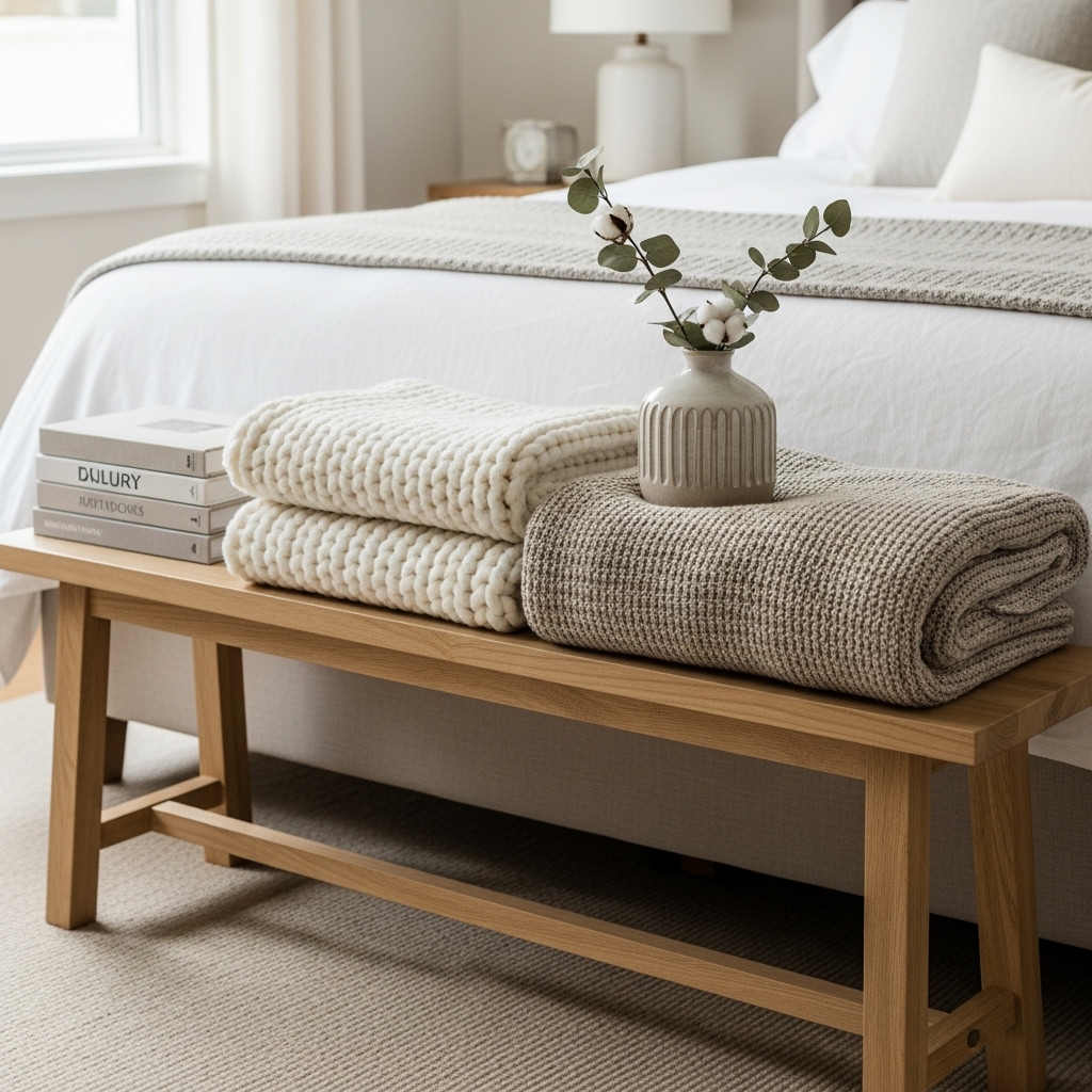 Layer soft blankets at the foot of your bed to make it instantly more inviting.