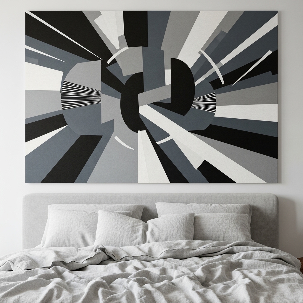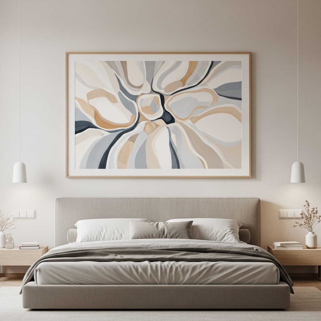 Keep artwork simple—black and white prints or calming abstract pieces are perfect. Fewer, larger art pieces create a statement without adding visual clutter.