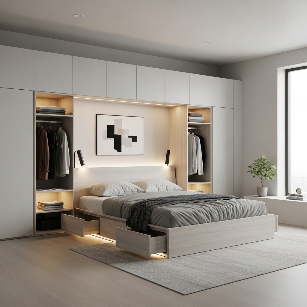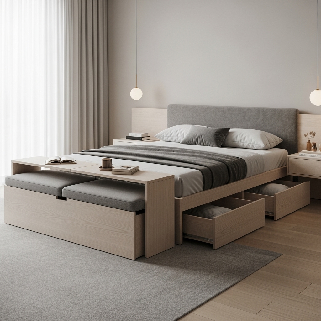 Furniture that doubles as storage—like a nightstand with drawers or a bench with hidden compartments—helps keep your bedroom functional and clutter-free.