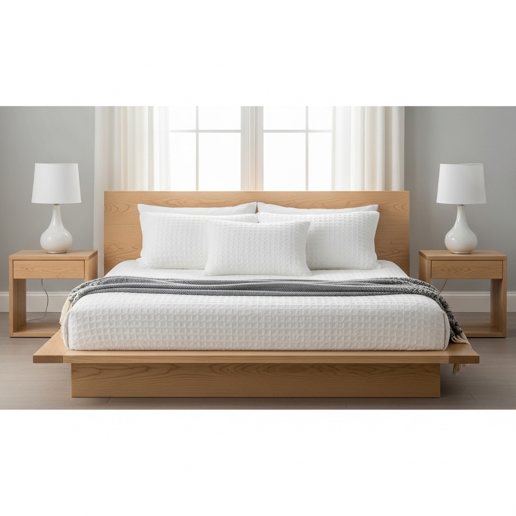 In a minimalist bedroom, the bed is the centerpiece. Choose a timeless bed frame—wooden or upholstered—and dress it with soft, breathable linens. Keep throw pillows to a minimum for a clean look.