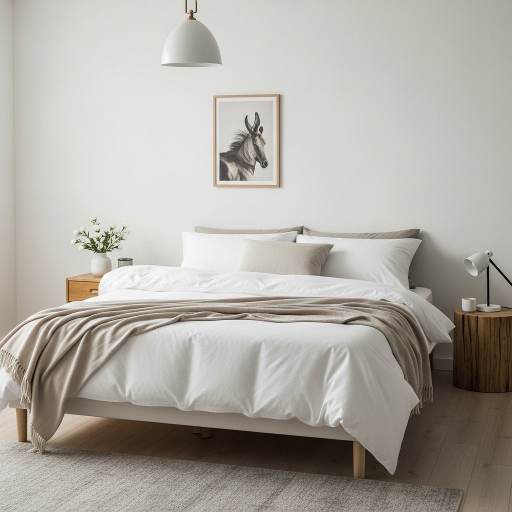 Comfort is key to cozy minimalism. Choose high-quality cotton or linen sheets in muted tones. A simple linen duvet cover, paired with a plush throw, creates a clean yet inviting atmosphere that enhances your serene sleep experience Cozy Minimalist Bedroom .