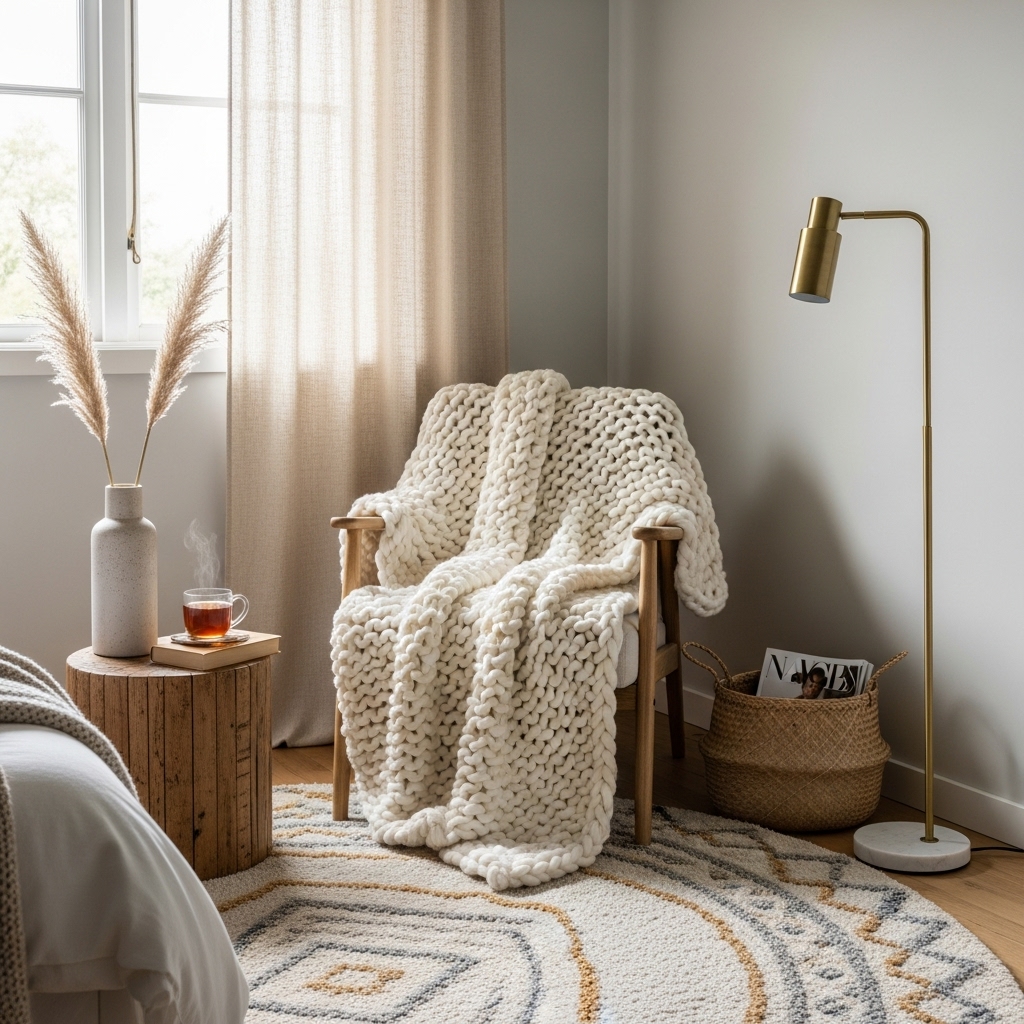 Minimal doesn’t mean cold. Introduce warmth through layered textures—think chunky knit blankets, a soft wool rug, or linen curtains. These elements make your minimalist room feel cozy and inviting without overwhelming your space.