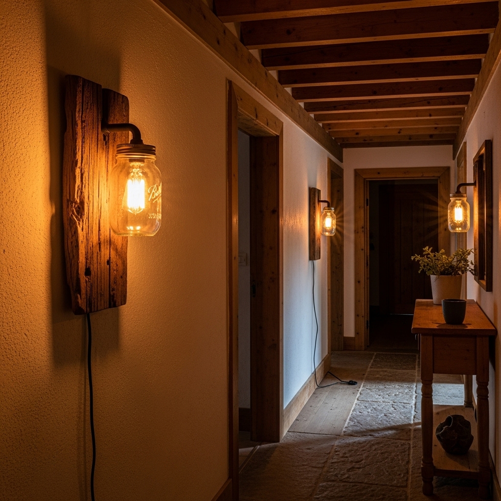 Craft your own light fixtures using mason jars, rope, or wood boards. These add warmth and ambiance while acting as statement pieces.