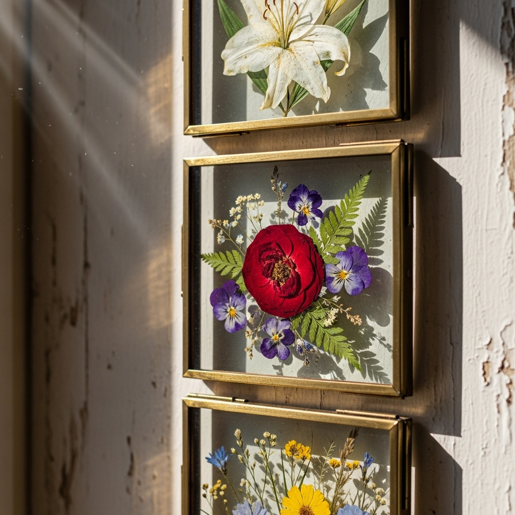 Collect seasonal flowers, press them, and display them between glass panels for an elegant nature-inspired touch.