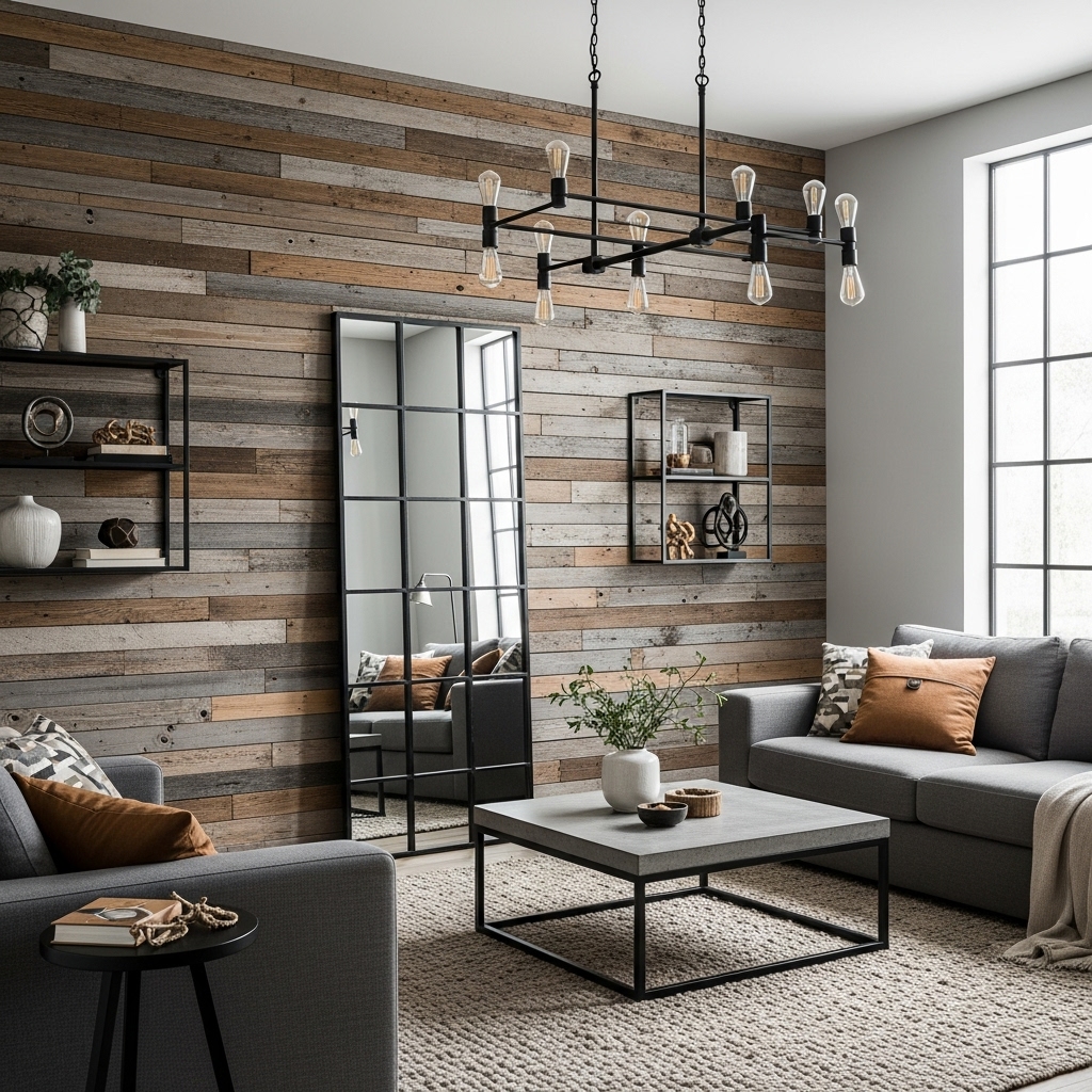 Add warmth and texture by covering one wall with reclaimed wood planks. It gives instant rustic charm.