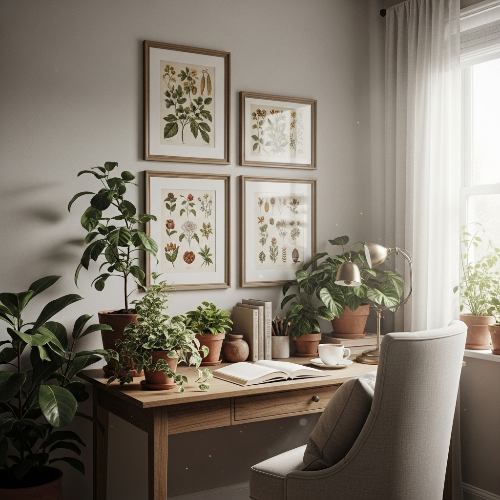 Print out vintage botanical illustrations and display them in matching frames for a timeless, elegant look.