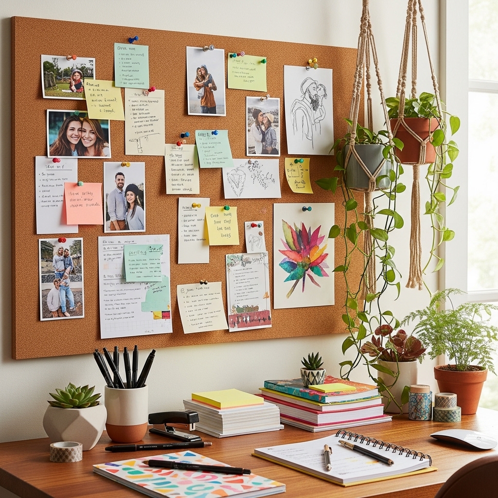 Perfect for offices or creative studios, a corkboard wall lets you pin notes, photos, and ideas — and swap them out easily.