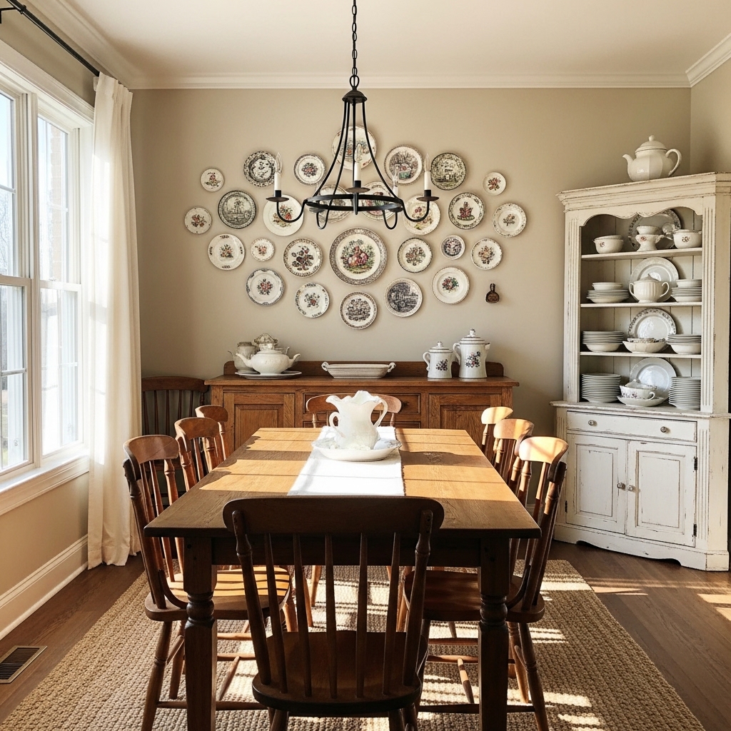 Mix and match thrifted plates and hang them in clusters for a chic, farmhouse-inspired display.