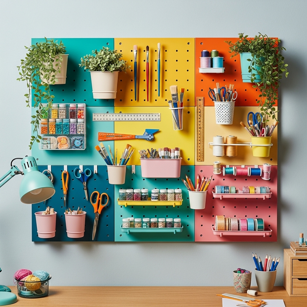 Paint a pegboard and use it to hang plants, mugs, or tools — stylish and functional.