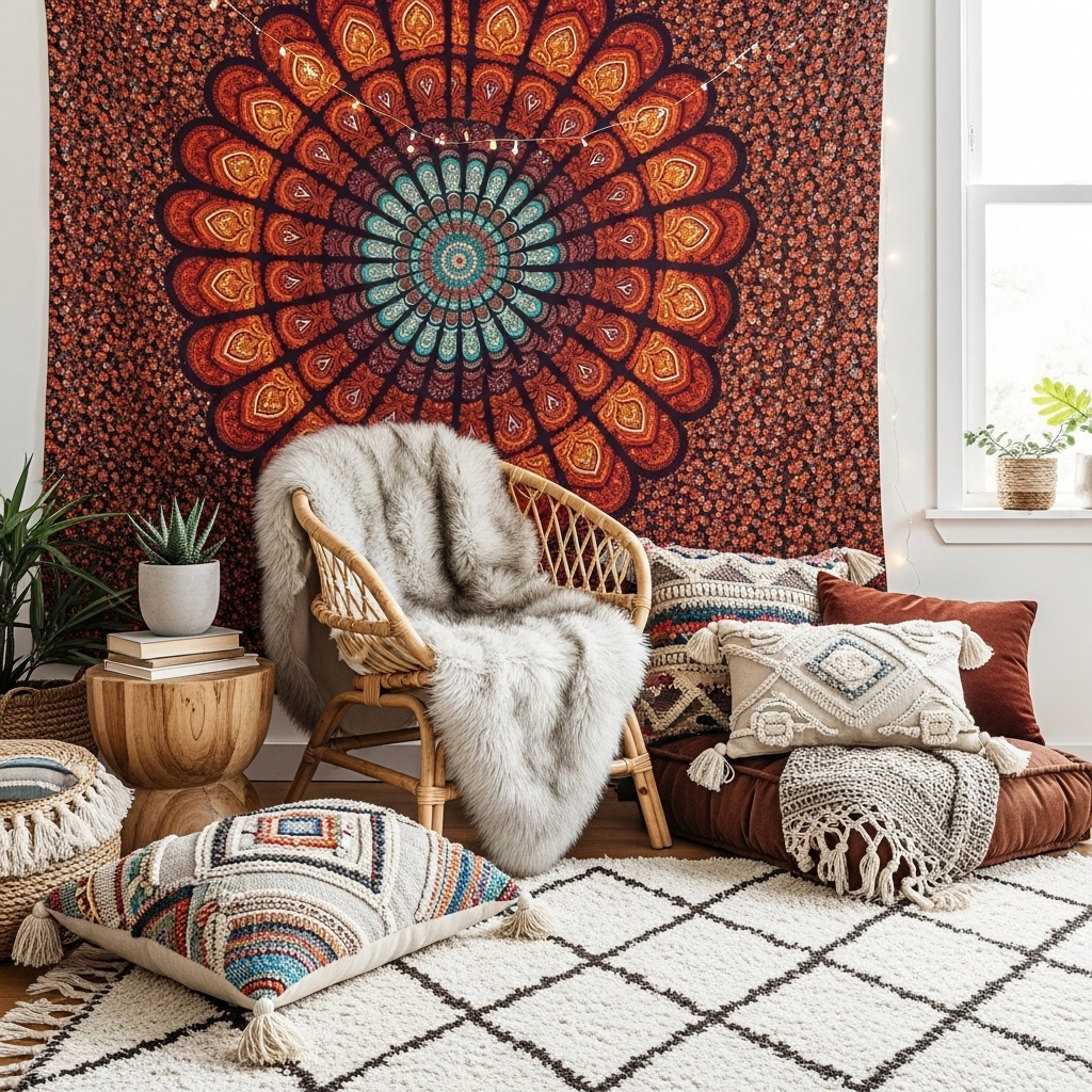 Large woven or printed tapestries instantly add color and texture to any room. Bonus: they’re easy to swap out seasonally.