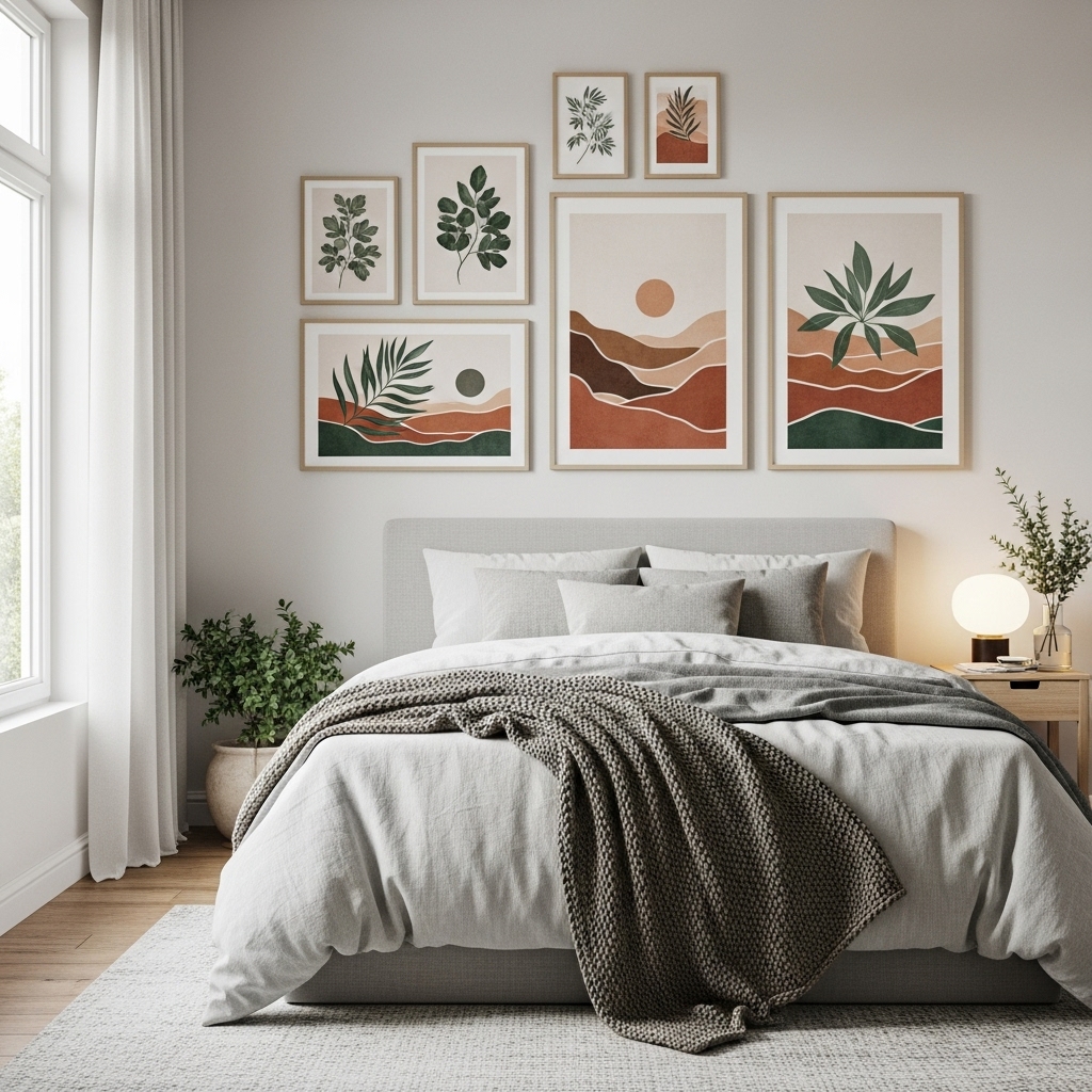 Wall art sets the emotional tone of your bedroom. Opt for art that evokes calm, peace, and positive memories.