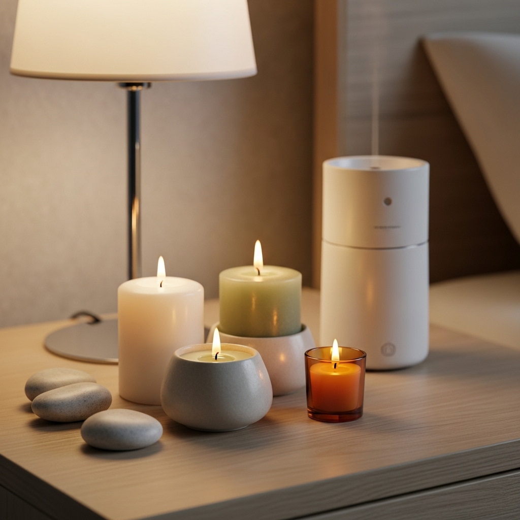 A calming aesthetic isn’t just visual — scent plays a huge role in relaxation. Aromatherapy can help signal your brain that it’s time to rest.