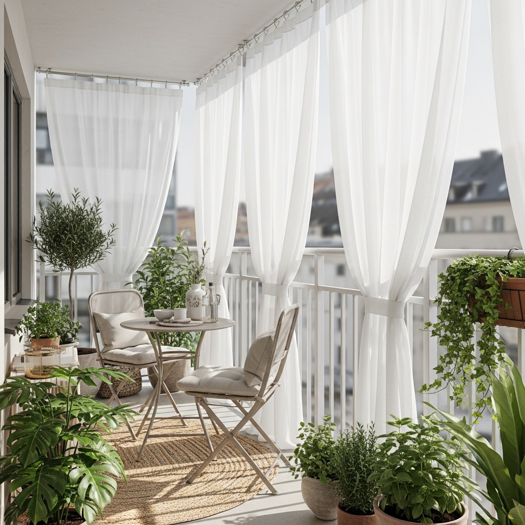 Outdoor curtains are one of the easiest and most stylish ways to add instant privacy. They soften the look of a balcony while creating a visual barrier from neighbors or nearby buildings.