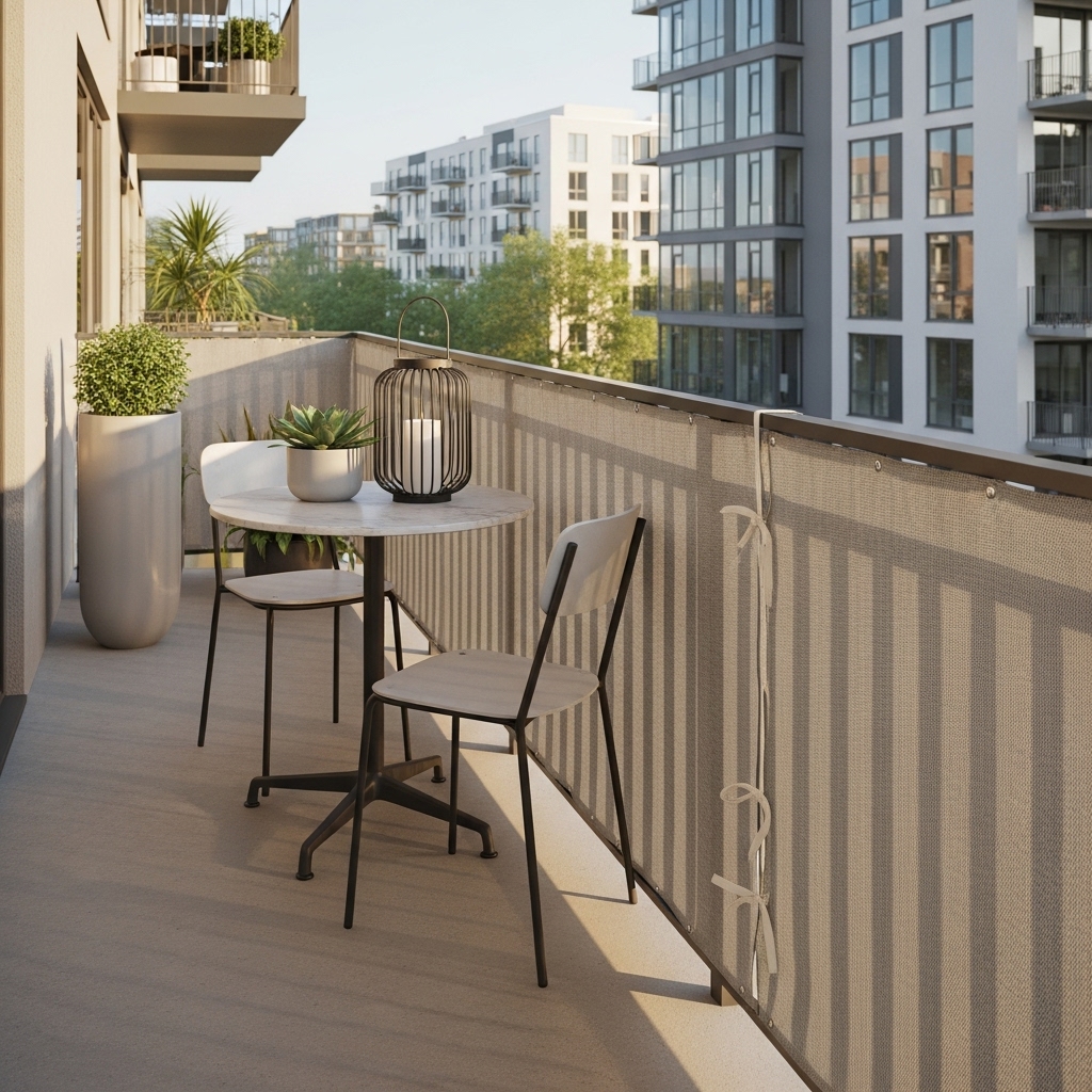 Railing covers made from fabric, mesh, or canvas are designed specifically for balconies. They attach using ties or Velcro and instantly block views from below or across.