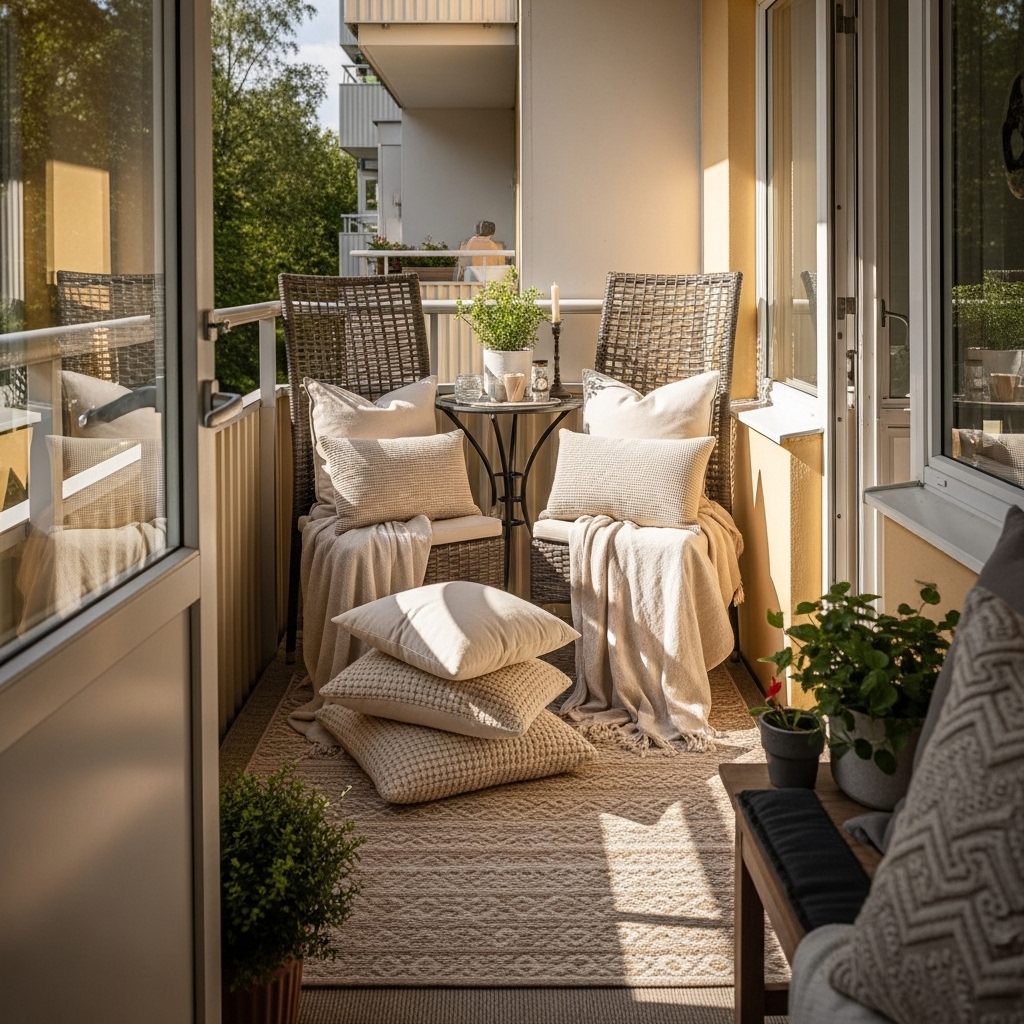 This psychological approach works especially well on small balconies where full screening isn’t possible.
