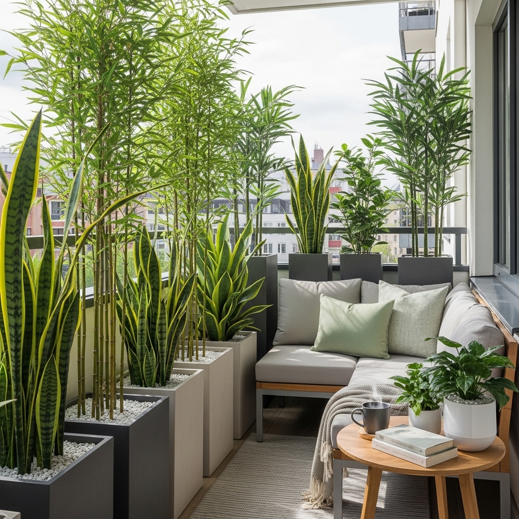 Bonus: Plants also reduce noise and improve air quality, making your balcony feel calmer and more relaxing.