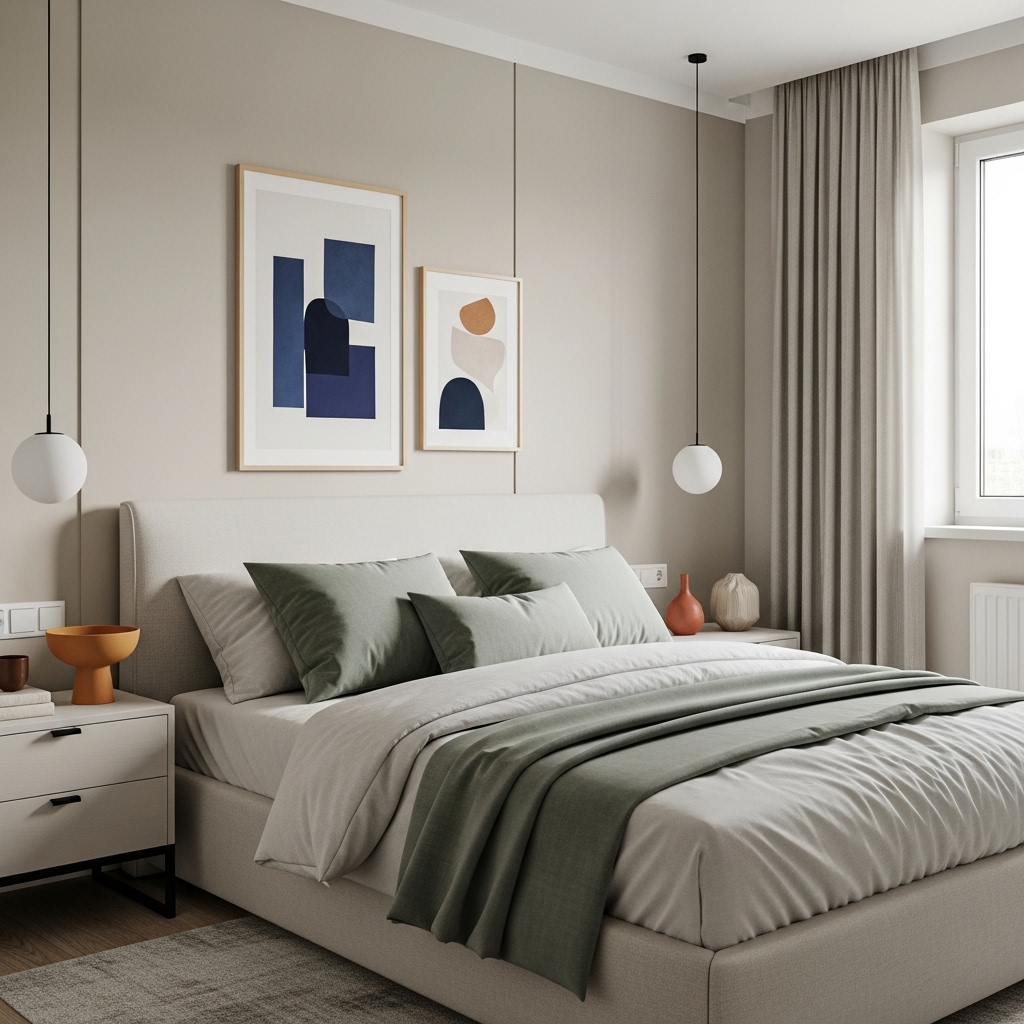 While beige and neutral bedrooms are stunning on their own, subtle accent colors can add personality. Soft earth tones like sage green, muted terracotta, or dusty blue complement beige beautifully.