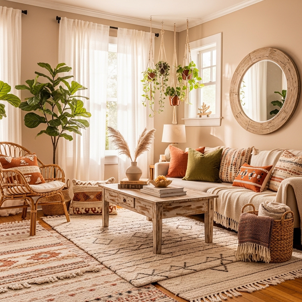 🪞 4. Layer Textures for That Cozy Boho Feel Boho Chic Living Room