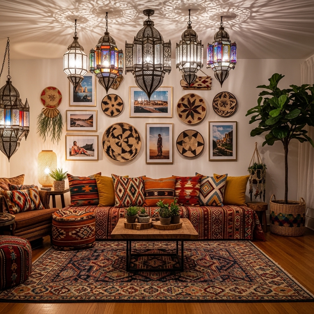 Lighting can make or break your boho-chic atmosphere. Avoid harsh, direct lights—instead, aim for soft, layered illumination that creates warmth and intimacy.