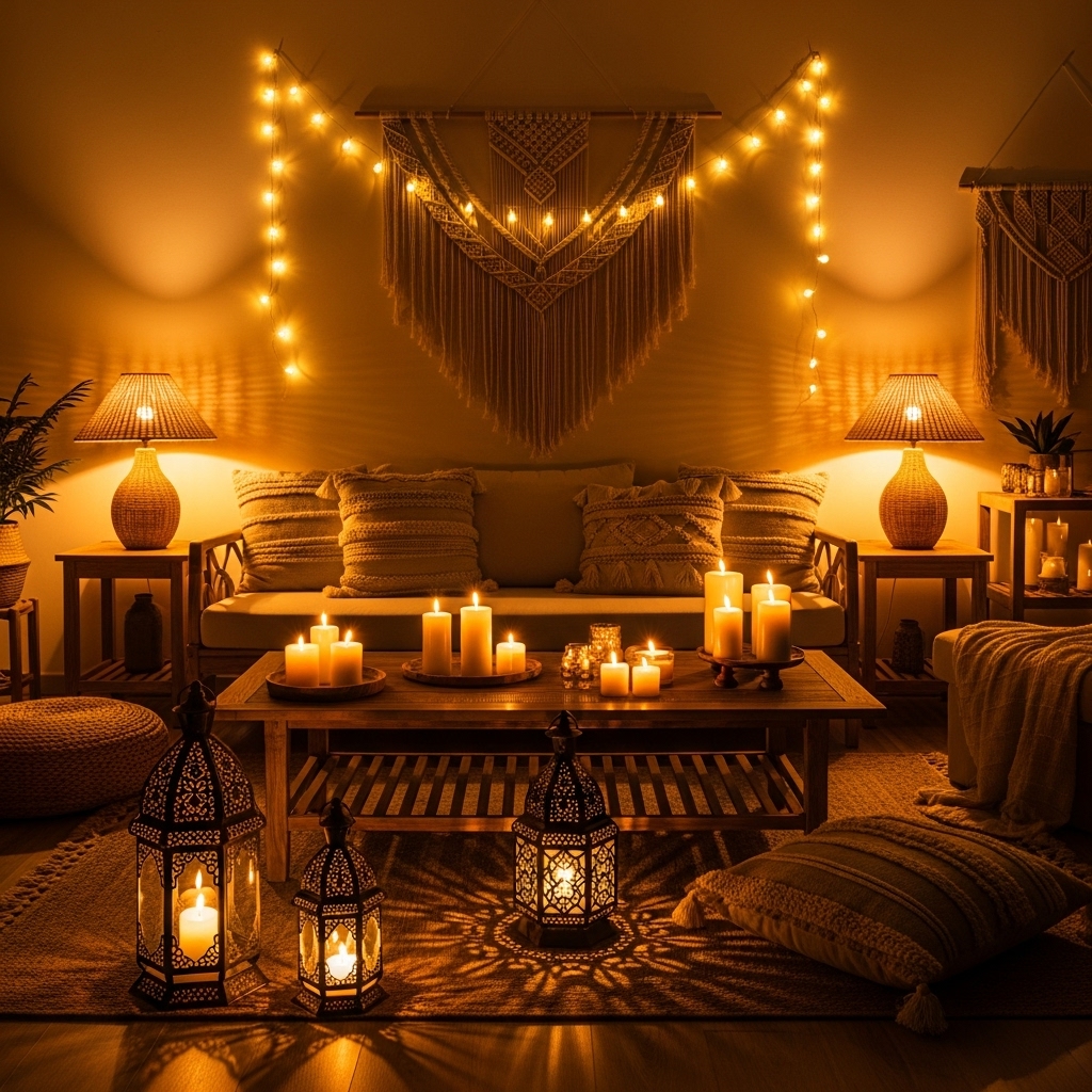 Lighting makes or breaks the boho vibe. Skip harsh overhead lights and choose warm, cozy lighting instead.