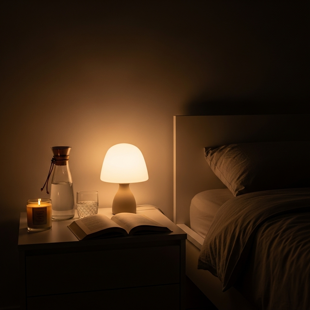 - A warm bedside lamp