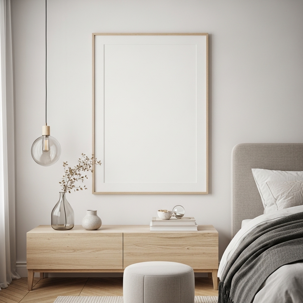 A cozy minimalist bedroom doesn’t need bare walls—you just need to choose thoughtfully. Instead of gallery walls full of multiple pieces, opt for: