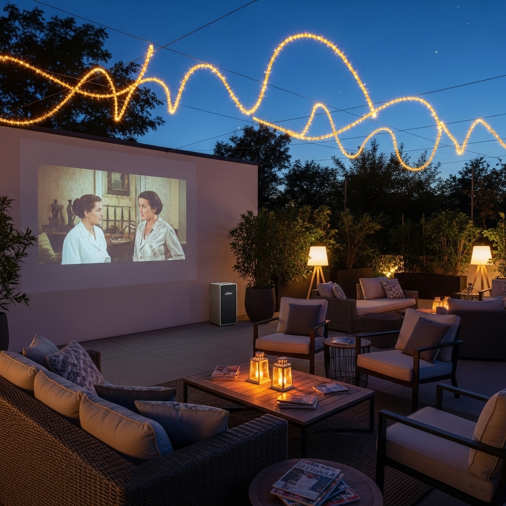 While the main goal of a cozy outdoor lounge is relaxation, subtle entertainment can enhance the experience. Outdoor speakers with soft background music, a small projector for movie nights, or even board games can make evenings more enjoyable.