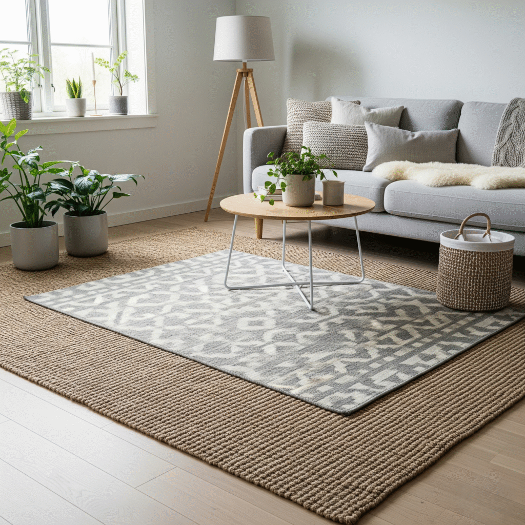 Consider a neutral jute rug for a natural, textured vibe or a patterned rug to bring personality into the space. Affordable and stylish options are available on Amazon.