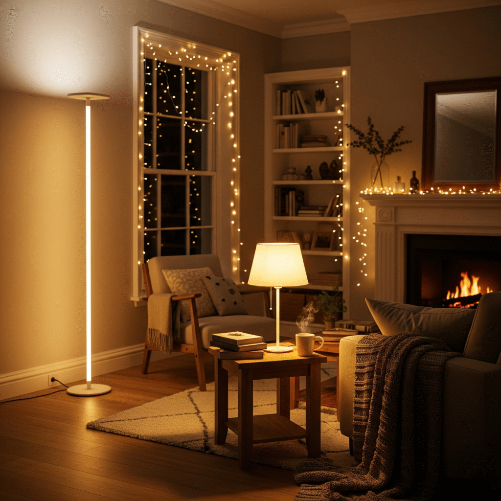 Lighting can make or break a living room. Aim for layered lighting — a mix of overhead lights, floor lamps, and table lamps — so you can adjust the brightness based on your needs.
