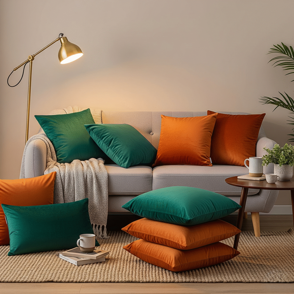 Try adding pops of color with throw pillows, blankets, or curtains. For example, you can get a set of velvet pillow covers in trendy shades on Amazon — an affordable way to refresh your décor anytime.
