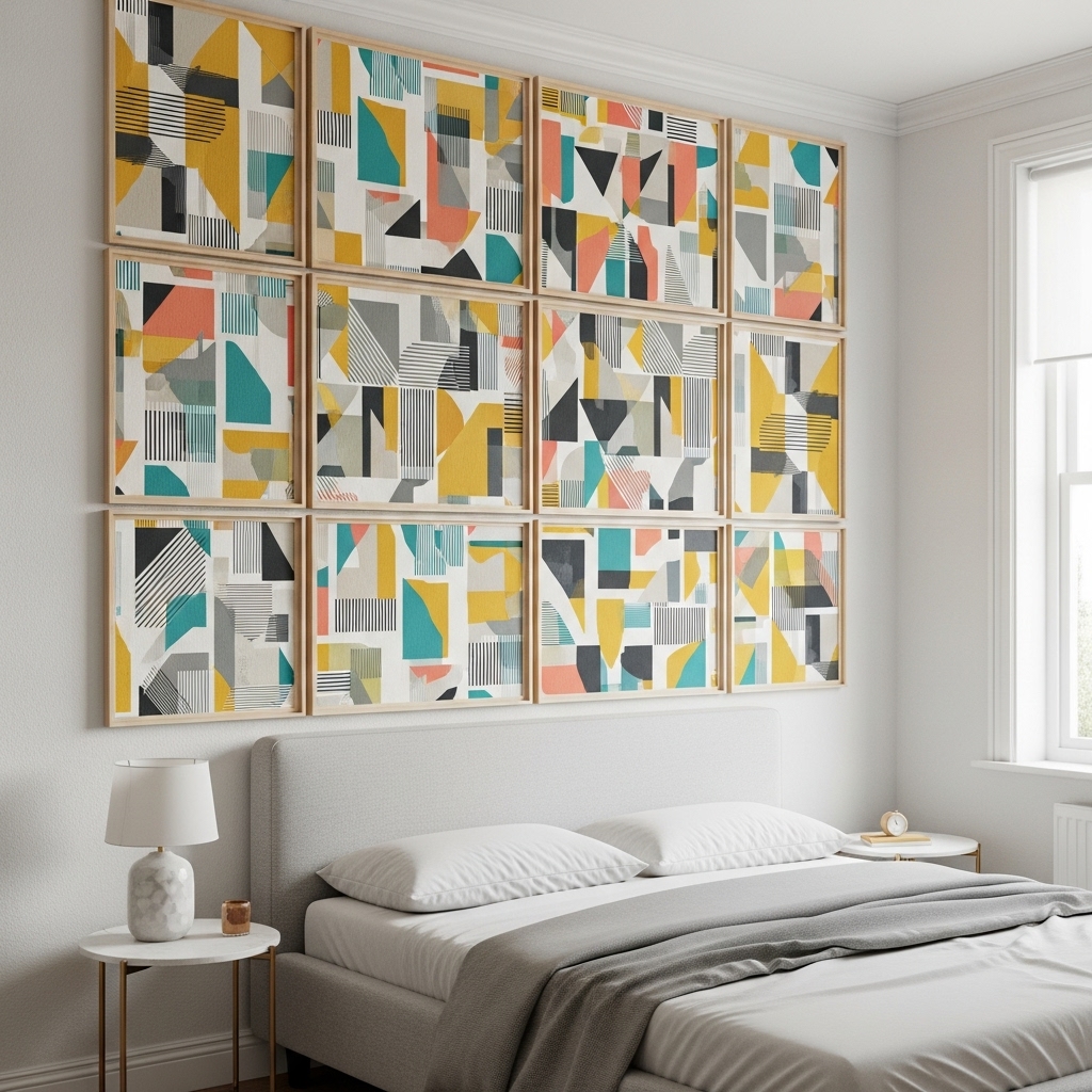 🖼️ Pro Tip: Add a few DIY touches — like painting your own abstract canvas or framing fabric swatches — for a more personal twist.