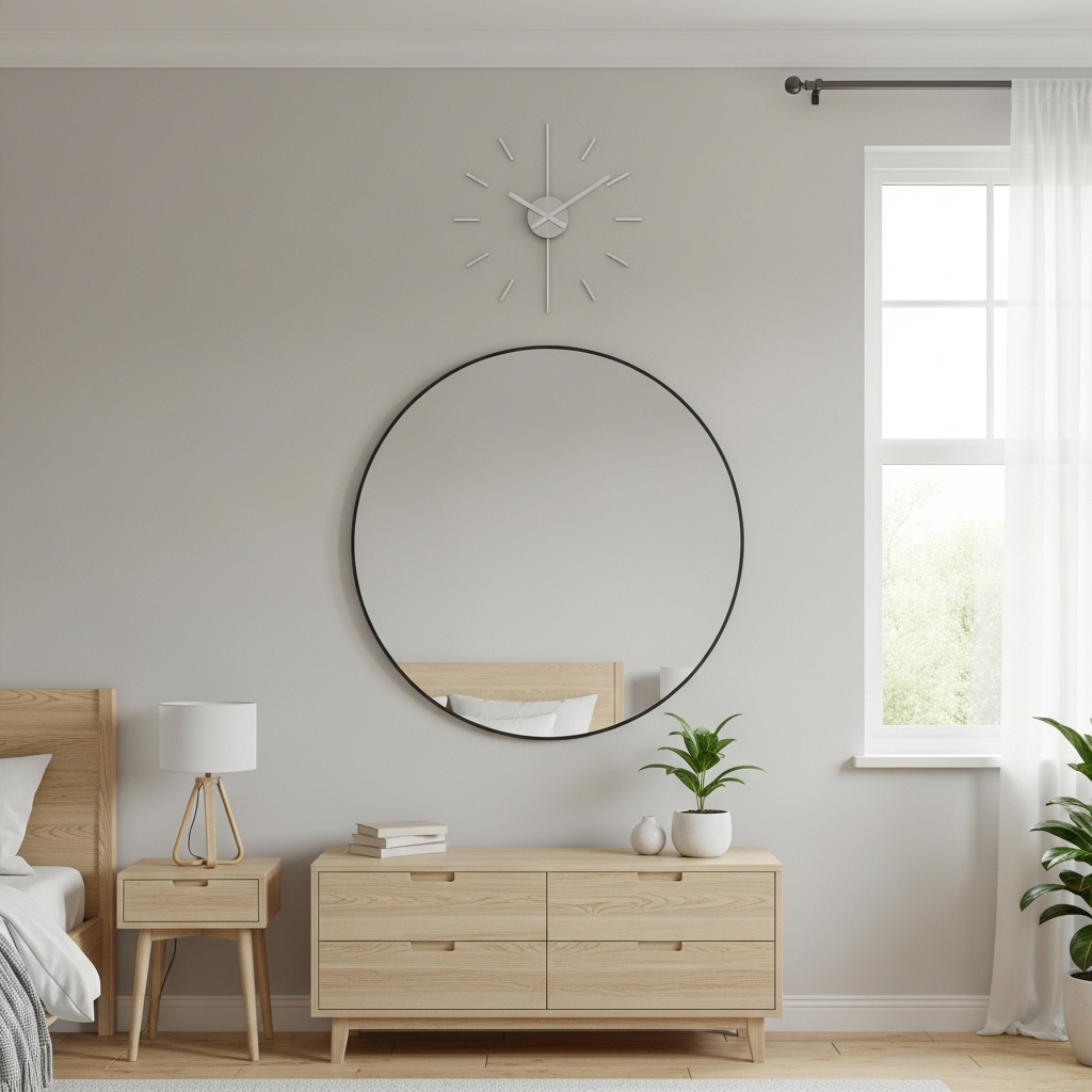 Mirrors and clocks are functional décor elements that also enhance light and space. Go for unique shapes or gold-rimmed designs to add sophistication.