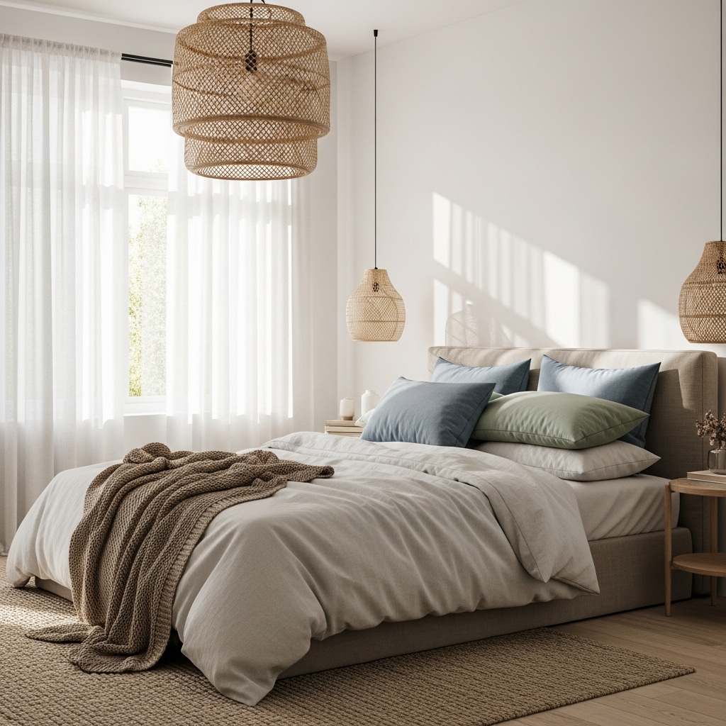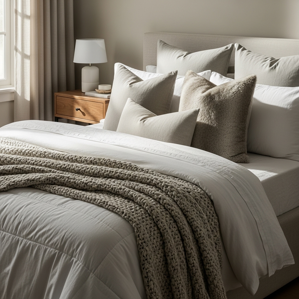 Opt for high-thread-count cotton or linen bedding for a breathable, elegant touch. Add a chunky knit throw or faux fur blanket to create cozy contrast.