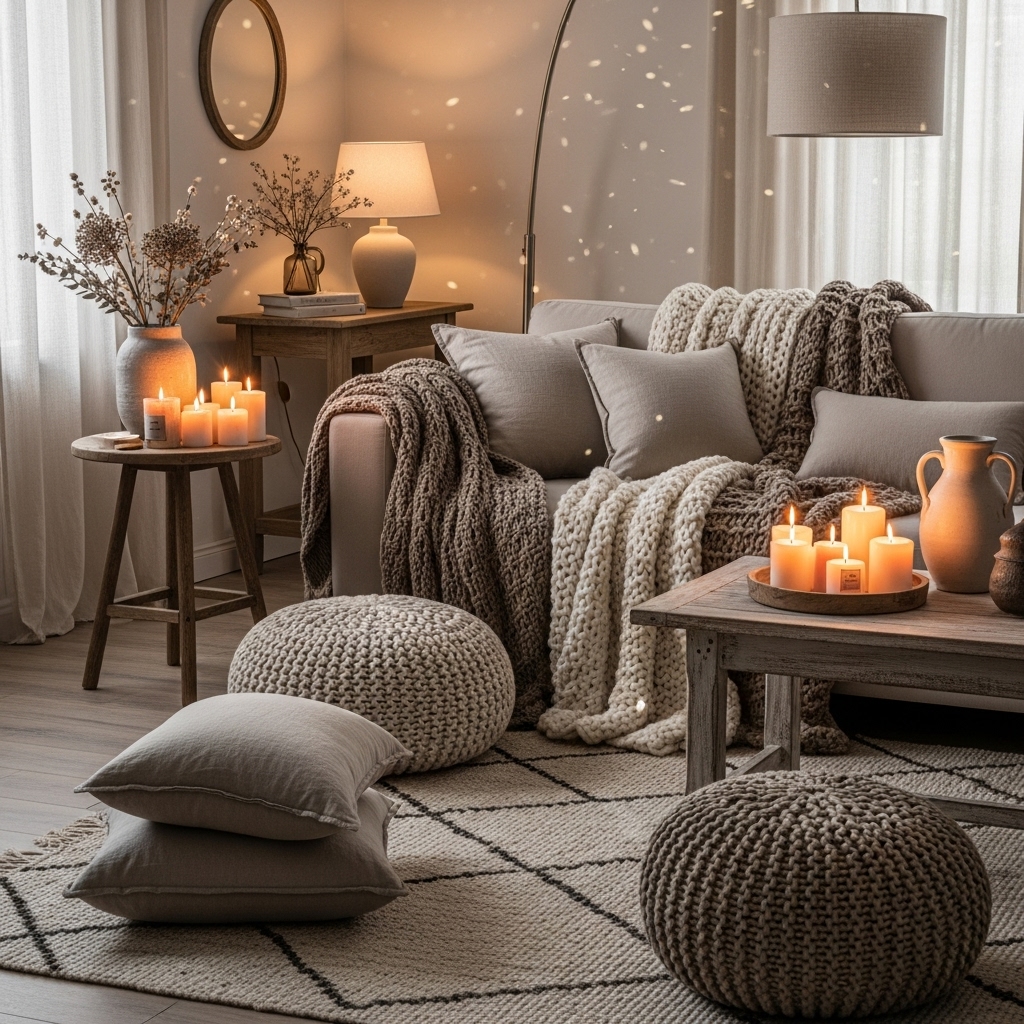 The beauty of neutral tones is that they allow you to mix cozy elements without feeling visually overwhelming. The result? A living room that feels calm, balanced, and deeply welcoming.