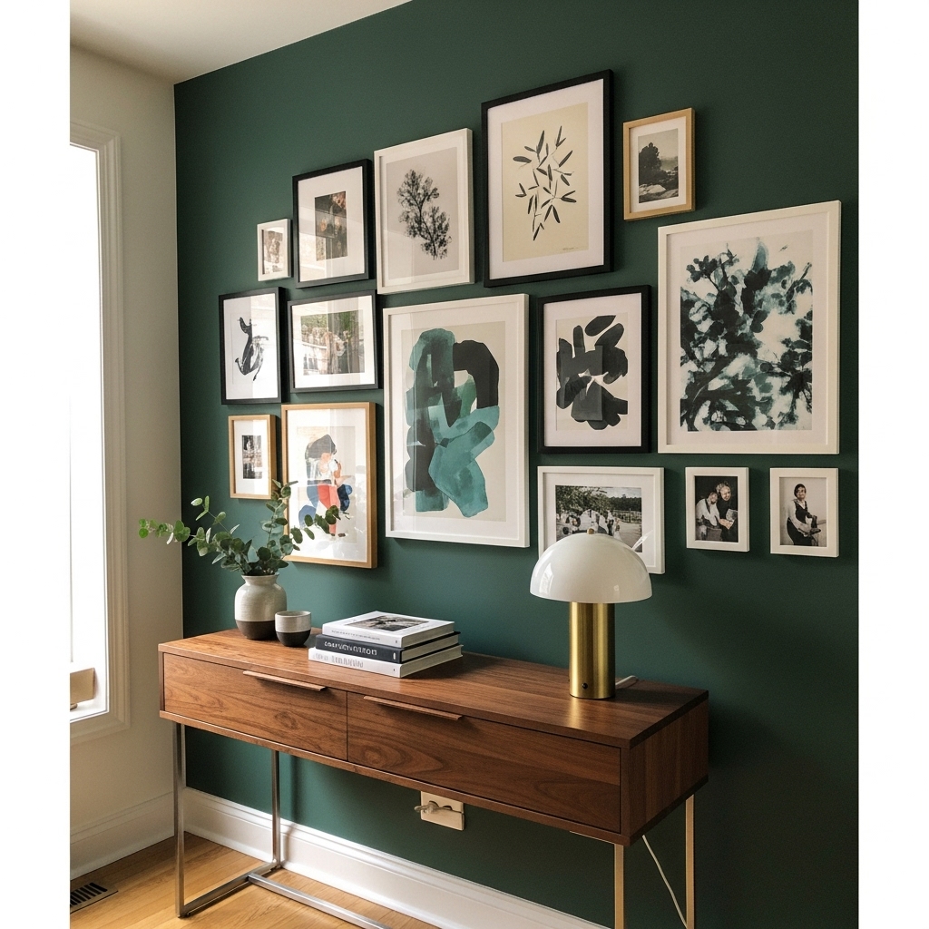 - Gallery walls featuring personal photos, art prints, or travel memories