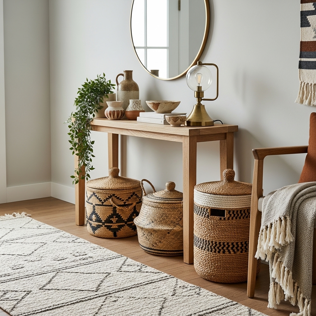 Texture adds depth and warmth, preventing your entryway from feeling flat or sterile.