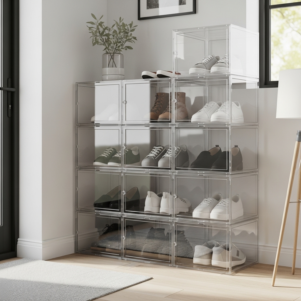 Modular systems give you the freedom to customize storage based on your needs and available space. Stackable shoe boxes or cube organizers allow you to build vertical storage as high as your ceiling allows.