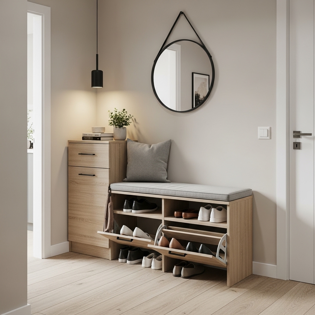 Ottomans with hidden storage are another smart choice. They serve as seating, footrests, and concealed shoe storage all in one. Using furniture that blends form and function is one of the most effective Entryway Shoe Storage Solutions for Small Spaces, especially when your entryway serves multiple purposes.